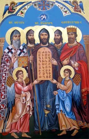 Սբ. Մեսրոպ Մաշտոցը ծնվել է մոտ 360-ին Տարոն գավառի Հացեկաց գյուղում: Մանկությունից սովորել է հունարեն, պարսկերեն և ասորերեն: Երիտասարդ տարիքում, իբրև բանիմաց անձնավորություն, ծառայության է անցնում հայոց արքունիքի դիվանում Խոսրով Գ թագավորի օրոք, ապա անցում է զինվորական ծառայության: Սակայն աշխարհիկ կյանքը Մեսրոպին չի գոհացնում: Ուստի որոշ ժամանակ անց թողնում է աշխարհիկ կյանքն ու մի քանի տարի ճգնակեցության տրվում՝ իր շուրջը հավաքելով աշակերտների: Այնուհետև նրանց հետ սկսում է Ավետարանը քարոզել Գողթնում և Հայաստանի այն վայրերում, որոնց բնակիչները դեռևս հեթանոս էին: Սուրբ Մեսրոպը ցավով նկատում է, որ հայ ժողովուրդը ճշմարիտ քրիստոնեական կյանքով չի ապրում և հասկանում է, թե որքան անհրաժեշտ է հայ գիրը, Աստվածաշունչն ու քրիստոնեական աստվածապաշտությունը ժողովրդին անմիջապես հայերեն մատուցելը և ոչ թե հունարեն կամ ասորերեն: Մինչև Մաշտոցի ժամանակները հայոց պաշտամունքը տարալեզու էր և հատուկ պաշտոնյաների միջոցով բանավոր կերպով թարգմանվում էր հայերեն՝ ստեղծելով անհարմարություններ: Այս մասին մտահոգ սբ. Մեսրոպը դիմում է հայոց կաթողիկոս սբ. Սահակ Պարթևին և Վռամշապուհ արքային: Եվ նրանք միասին ելքեր են սկսում փնտրել հայոց գրերի ստեղծման համար: Լսում են, որ Դանիել անունով մի ասորի եպիսկոպոս հայերեն ինչ-որ գրեր ունի: Դրանք ձեռք են բերում, մի երկու տարի դրանք սովորեցնում աշակերտների մի խմբի, փորձում կիրառել, սակայն տեսնում են, որ այդ գրերը, որոնք քսաներկուսն էին, հավանաբար սեմական ծագման, շատ անհարմար ու թերի էին հայոց լեզվի համար: Ի վերջո, Ասորիքի Եդեսիա քաղաքում սբ. Մեսրոպն աստվածային տեսիլքի միջնորդությամբ ստեղծում է հայոց 36 գրերը: Այս գյուտը տեղի է ունեցել հավանաբար 406-ին: Այնուհետև իր երկու աշակերտների՝ Հովհան Եկեղեցացու և Հովսեփ Պաղնացու հետ ձեռնարկում է Աստվածաշնչի հայերեն թարգմանությունը: Առաջին գիրքը, որ սկսում են նրանք թարգմանել, լինում է Առակաց գիրքը: Աստվածաշնչի թարգմանության գործին լծվում է նաև հայոց Սահակ կաթողիկոսը: Այն բնագրին մոտ լինելու շնորհիվ իրավամբ կոչվում է «թագուհի թարգմանությանց»: Իսկ առաջին հայերեն նախադասությունը, որ Մաշտոցը թարգմանում է Աստվածաշնչից, հետևյալն է. «Ճանաչել զիմաստութիւն եւ զխրատ, իմանալ զբանս հանճարոյ»: