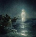 Եվ երբ ժողովրդի բազմությունն արձակեց, առանձին լեռ բարձրացավ աղոթելու համար։ Եվ երբ երեկո եղավ, այնտեղ էր, մենակ։ Նավակը ցամաքից մղոններով հեռացել էր՝ դես ու դեն քշվելով ալիքներից, քանի որ քամին դիմացից էր։ Եվ գիշերվա ուշ ժամին Հիսուս եկավ նրանց մոտ՝ քայլելով ծովի վրա։ Երբ աշակերտները նրան տեսան ծովի վրա քայլելիս, տագնապահար եղան և ասացին. «Ինչ-որ ուրվական է». ու սարսափից աղաղակեցին։ Հիսուս իսկույն խոսեց նրանց հետ ու ասաց.